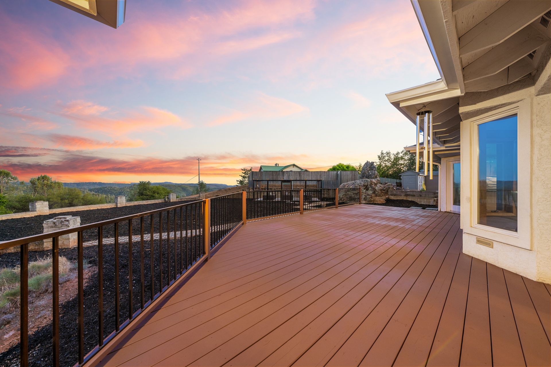 You are in for a treat to view this STUNNING single story home perched atop the Sierra Foothills with expansive 200+ degree views of the foothills and Folsom Lake! This home boasts so many custom improvements & has a fabulous modern open floor-plan with 4 large bedrooms & 2.5 updated bathrooms. The gated entry sits in a quiet cul-de-sac tucked back atop the hill, as you enter the wrap-around driveway immediately greeting with incredible views. The home features solid maple hardwood floors, upgraded windows, fully integrated audio & video security, 2 year cool roof, new electrical panels & brand new back deck. As you walk through the house you will notice custom finishes throughout, the kitchen is a true chef's kitchen with Miele range, Sub Zero fridge & custom cabinets with Cambria quartz countertops. Nearly every room has a fabulous view of the foothills, the best view of all opens up from the HUGE back deck just off the living area. Additional great features of this home include the ability to split this lot with separate road access, a pad & driveway built for ADU if needed, 7.2KW Tesla solar system including 3 power walls. The lot has plenty of defensible space & is very low maintenance already! You will not be disappointed!