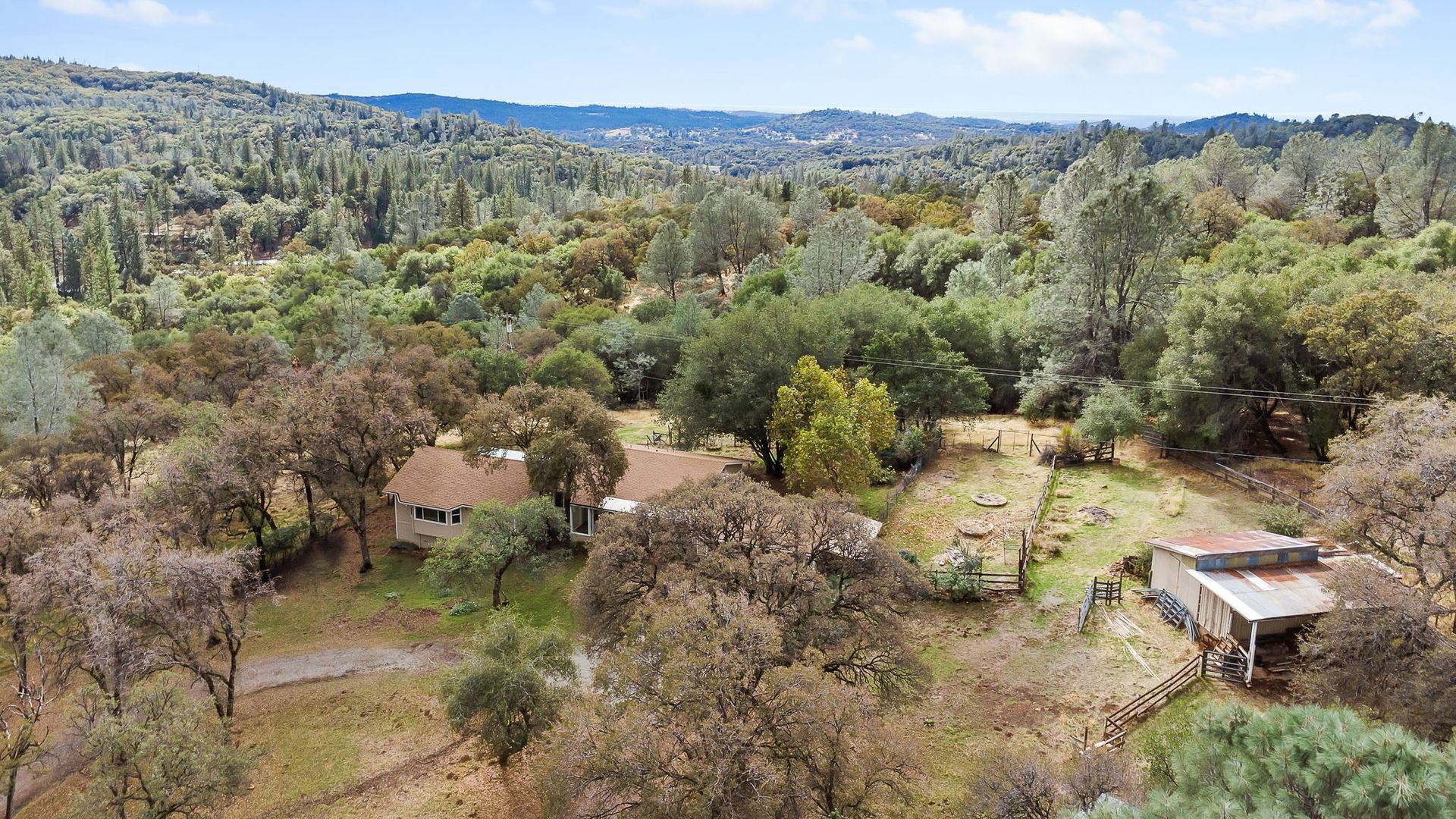 Discover your private country retreat in this distinctive 3 bedroom, 3 bath ranch-style home set on 26.5 scenic acres, ready for you to make it your own. Step inside to find open-beam ceilings, abundant natural light & sweeping views that go on forever. The primary suite is a true showstopper, featuring a cozy sitting area, a private deck & luxurious ensuite bath. Another bedroom offers its own private bat, perfect for guests or extended family. This versatile property has room to create your dream orchard, vineyard or equestrian setup. It includes horse stalls, fenced & cross-fenced pastures & partial irrigation. Take in the panoramic views & incredible sunsets from the deck in peaceful surroundings. With 30 owned solar panels, a 60 GPM well (per owner) & newer HVAC system & swamp cooler, efficiency & comfort come standard. The property also includes a barn, tack room & a large newer grow house, offering endless agricultural possibilities. Conveniently located just minutes off McCourtney Road, this serene escape offers both privacy & accessibility. Come experience the charm and opportunity of Grass Valley, where a warm, welcoming community awaits.