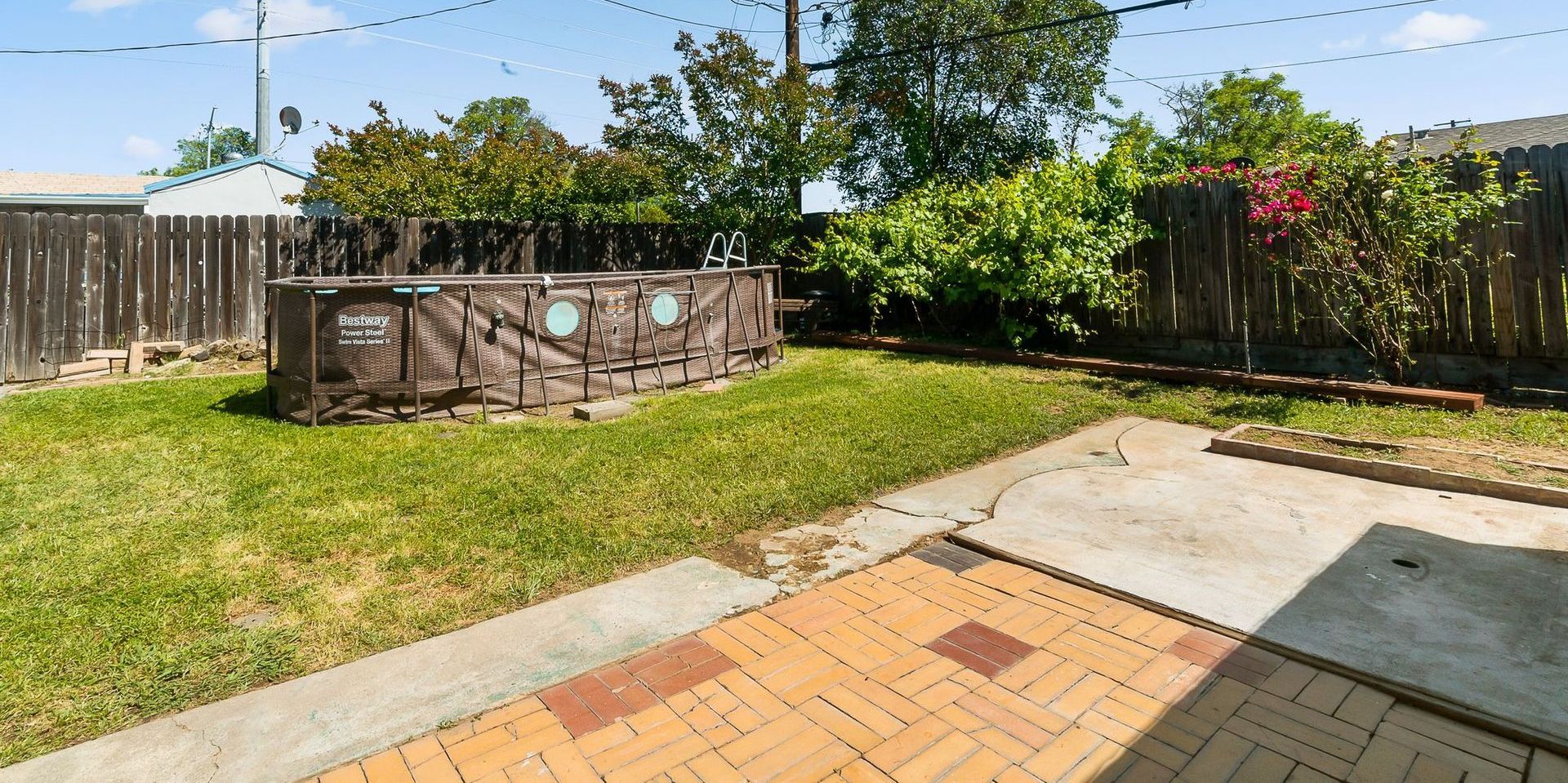 This absolutely charming single story home is ready! With fresh paint and new carpet this is a must see! The floor plan features 3 bedrooms, 1 full bath, kitchen, breakfast nook & living room. Step into this warm and inviting living room with polished hardwood floors and picture perfect window. The kitchen has an abundance of cabinets, plenty of counter space and lots of natural light throughout. The bedrooms are a good size with closet space. The bathroom is updated with quartz countertops, separate tile shower and soaking tub. Relax on the front patio with an amazing sunset view. There is a detached garage with additional driveway space and possible RV access. The oversized backyard has a patio, plenty of room for BBQ, play space, storage shed and above ground pool. Conveniently located to shopping, local eateries, schools, parks, and transportation and easy freeway access to downtown Sacramento. This would be perfect for the first time homebuyer or possible income property for savvy investors.