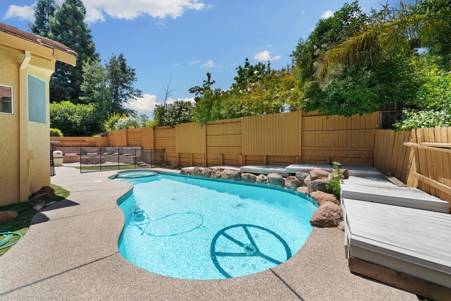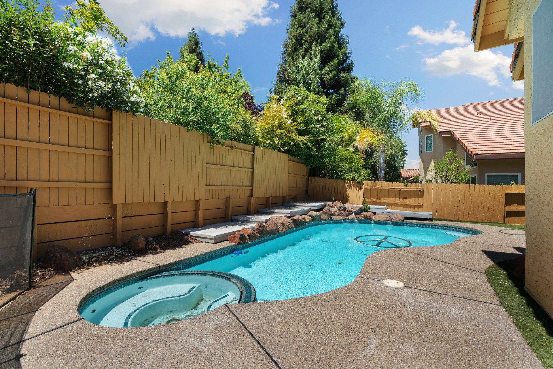 Located in one of Folsom's desirable neighborhoods of Lexington Hills, this 4 bed, 3 bath home has it all! Entering, you'll appreciate the front family room with vaulted ceilings, large formal dining & living room w/ a gorgeous floor to wall brick fireplace perfect for space to entertain! This kitchen includes an island complete with a built in range, new stainless steel appliances & tons of cabinet/counter space! Both of the hall bathrooms have been tastefully renovated to include gorgeous upgrades! New LVP, carpet, and interior paint throughout! This adorable tri-level includes a full bed/bath downstairs perfect for guests, bright & open Master bedroom with a spacious bathroom, and a show-stopping backyard you'll never want to leave! The backyard is complete w/ a seating area to enjoy with friends around a custom fire pit and stadium tiered patio deck overlooking the glistening pool & waterfall! Conveniently located near Beacon Hill Park % Happy Trails Preschool. Come see today!