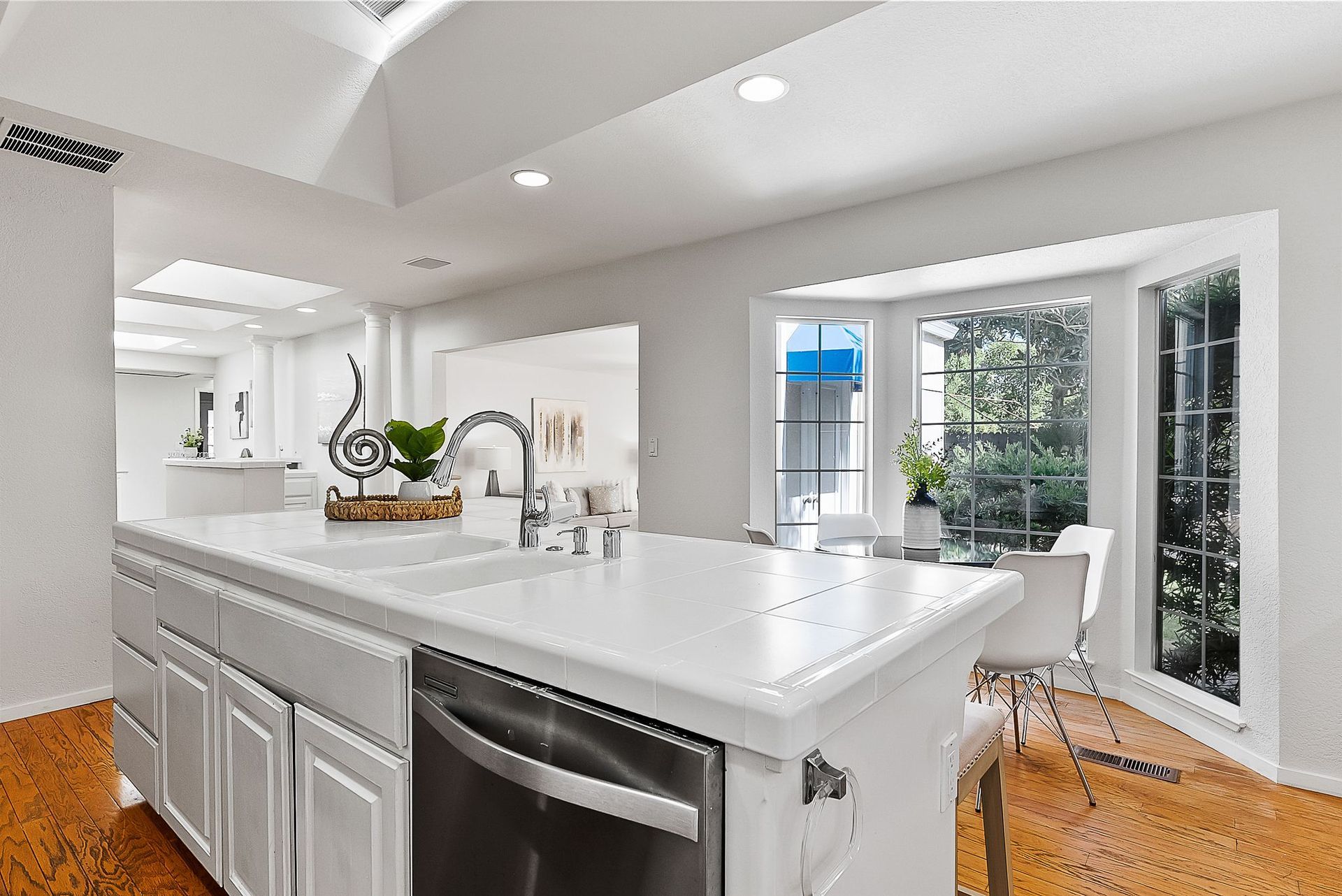 Welcome to this timeless mid-century gem located on Glen Ellen Circle! Featuring 2 spacious bedrooms and 2.5 bathrooms, this beautifully updated home offers fresh paint, refinished flooring & stylish new fixtures throughout. The bright, white kitchen is a standout with ample cabinetry, generous countertop space, & sleek appliances. Custom built-ins, skylights & a striking fireplace add character & charm, while large windows & french doors fill the open-concept living space with natural light. Designed for both comfort and entertaining, the home includes formal dining & living areas, along with a built-in bar, perfect for hosting guests. The bedrooms are generously sized & the ensuite bath showcases a fresh, contemporary design. Step outside to a serene, expansive backyard surrounded by lush, exotic landscaping that offers both beauty & privacy. It’s an ideal setting for relaxing evenings or lively gatherings with friends and family. Located in an established Sacramento neighborhood, this home offers easy access to freeways, shopping, light rail & nearby colleges.