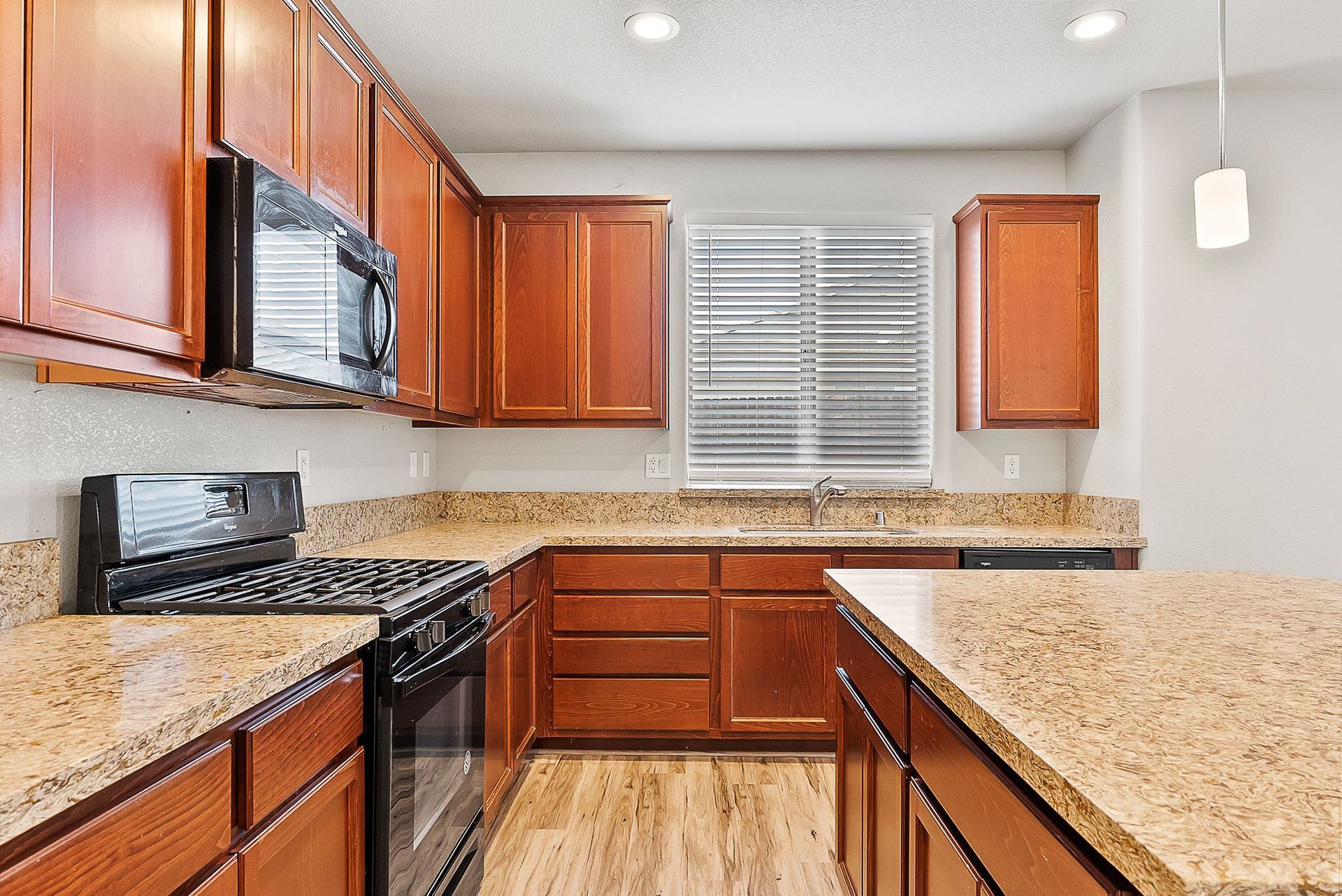 This sleek kitchen blends sleek design with functionality, creating a space that's both aesthetically pleasing and practical. Featuring beautiful granite countertops, rich cabinetry and newer stainless steel appliances, this kitchen is sure to make any chef feel right at home.