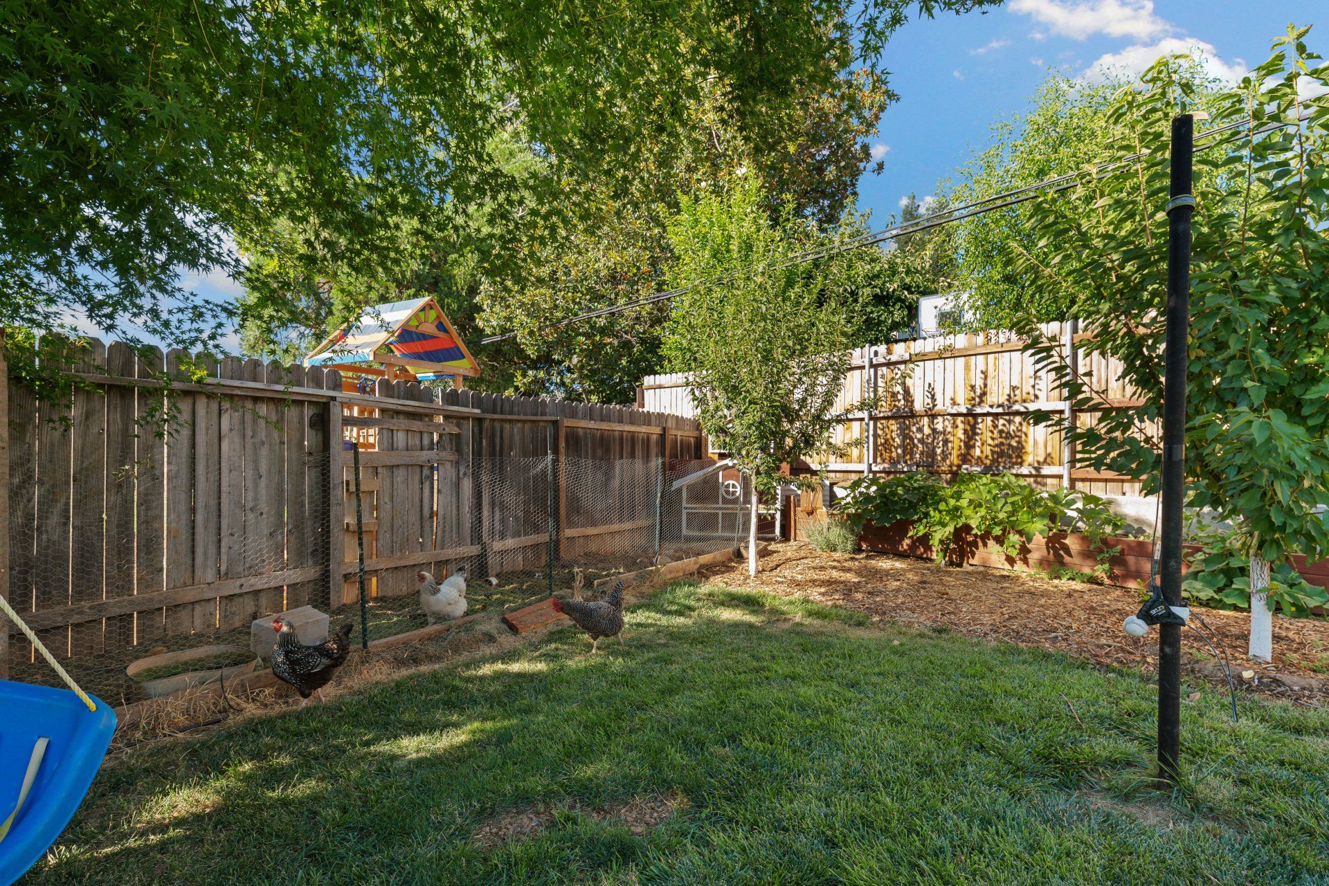Located in the established neighborhood of Mills Park Estates, this well maintained Rancho Cordova charmer has everything you've been searching for! The white-picket fence curb appeal is the perfect entry to this updated 3 bed & 2 bath home. Entering, you'll appreciate the gorgeous wood tile and LVP flooring that flows into the light & bright kitchen with ss appliances and newly painted white cabinets! Enjoy cold winter nights by the brick fireplace in the spacious living room and family meals in the formal dining area. Both bathrooms have been tastefully updated with subway tile, new vanities, and stunning tile flooring! Escaping at the end of a long day to the master bathrooms's spa-like soaker tub is going to feel like a retreat! Make your way to the entertainer's backyard! With ample room to roam and endless fruit producing trees to enjoy, you'll love hosting summer BBQs every weekend! Close to freeway access and newer retail shopping, this is an incredibly convenient location.