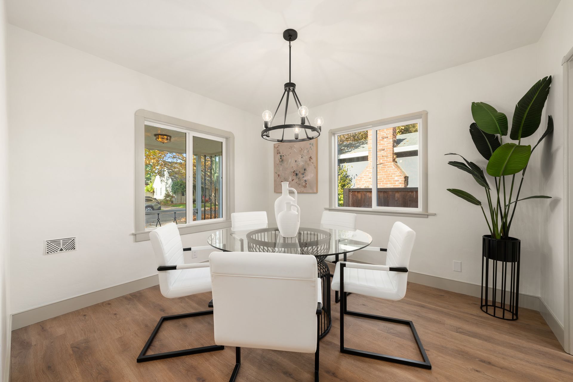 Step into this beautifully renovated home, where modern updates blend seamlessly with cozy charm. Enjoy brand, new flooring, fresh interior paint, and updated windows throughout. The inviting dining area flows effortlessly from the living room, making it ideal for everyday meals, hosting friends, or holiday gatherings. A chic retro-style fireplace anchors the space, while expansive windows fill the room with natural light, creating a warm, welcoming atmosphere you’ll love coming home to day after day.