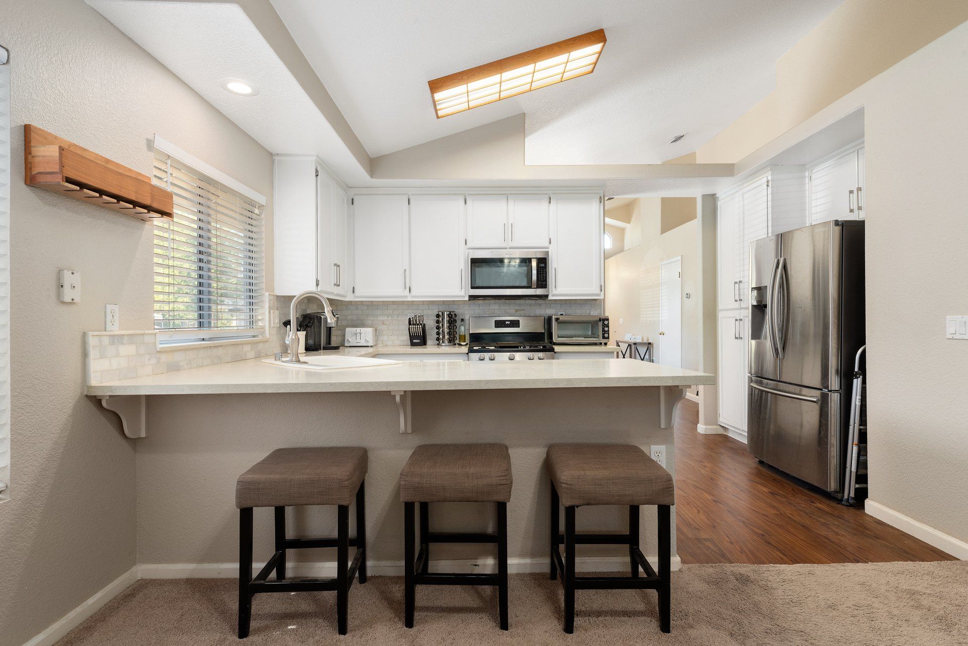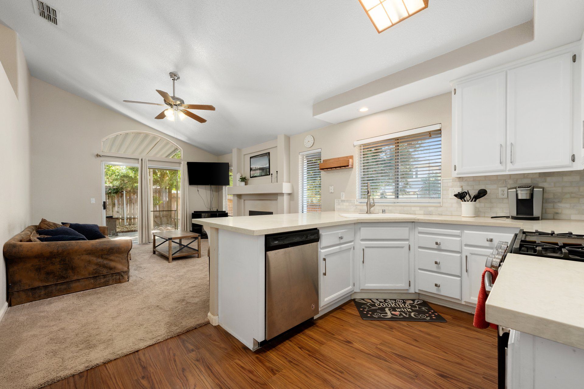 Located in the beautiful neighborhood of Antelope Oaks, this amazing corner lot home is move in ready! Entering, you are greeted with an open concept front family and dining room complete with gorgeous flooring that flows seamlessly into the stunning kitchen! This remodeled kitchen features quartz countertops, painted cabinets, stainless steel appliances, and gorgeous marble backsplash throughout! Enjoy the colder months near the cozy fire in the spacious living room. Both bathrooms have been beautifully updated to include new vanities, lighting, fixtures, and tiled flooring.