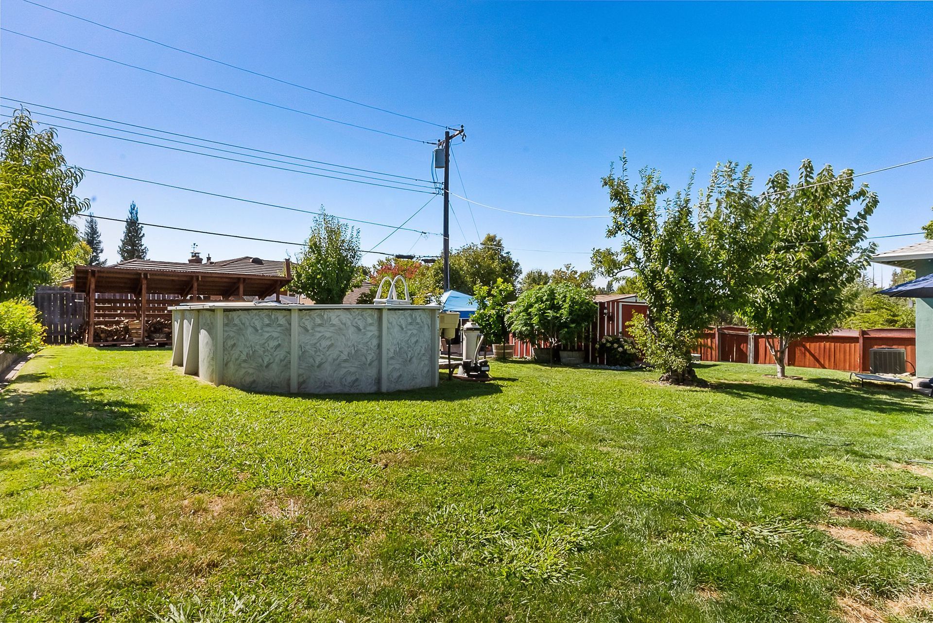 Welcome to this charming 3 bedroom, 2 bath home nestled in a highly desirable Carmichael neighborhood. From the moment you step inside, you'll be greeted by a spacious & inviting living room featuring warm hardwood floors & an abundance of natural light streaming through. Adjacent to the living area is a cozy family room complete with a fireplace & a convenient dining space that flows seamlessly into the well-appointed kitchen. The kitchen offers ample counter space & plenty of cabinetry for storage. The generously sized primary bedroom features its own private bathroom & direct access to the backyard, creating a peaceful retreat. Additional bedrooms are spacious, each with large closets with plenty of storage. An indoor laundry room with cabinetry adds extra convenience. Step outside into the expansive & private backyard with above ground pool, mature landscaping, fruit trees & space for entertaining or gardening. The property also includes RV access & a large storage unit in the backyard, perfect for tools or yard equipment. Located in a community that still holds the charm of a small town, this home offers easy access to local eateries, shopping, excellent schools & access to major highways for commuters. Don’t miss this opportunity to own a beautiful home in one of Carmichael’s most welcoming neighborhoods.