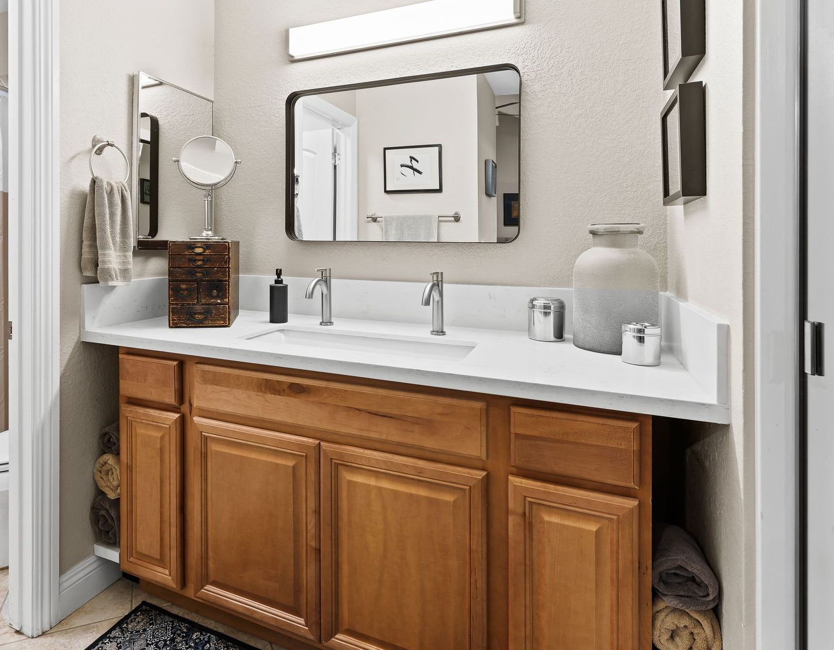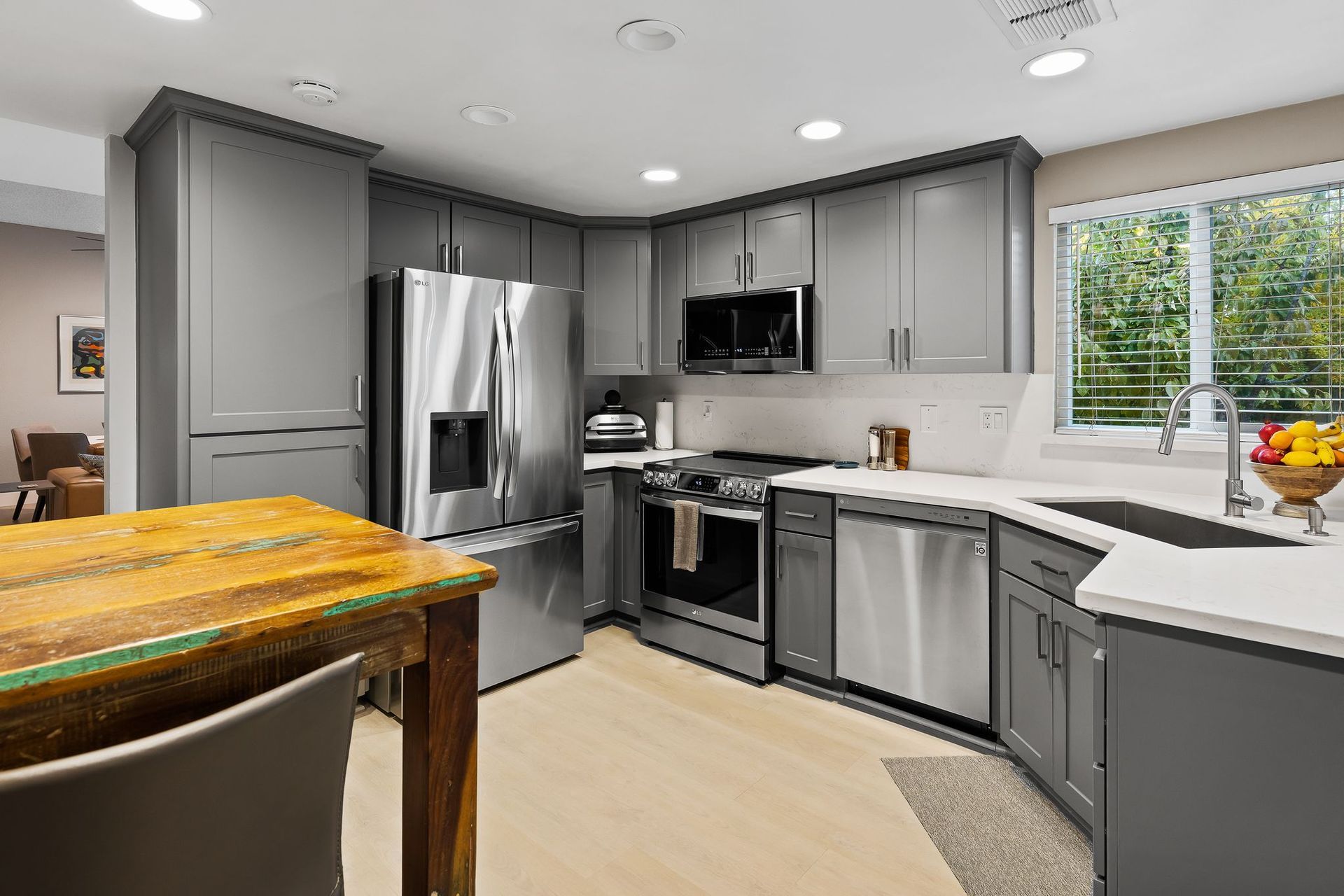 The kitchen is a Chef’s dream! Complete with quartz countertops, sleek, soft-close cabinets & state of the art, stainless steel appliances. You will absolutely love preparing meals in this updated kitchen that overlooks the backyard paradise!