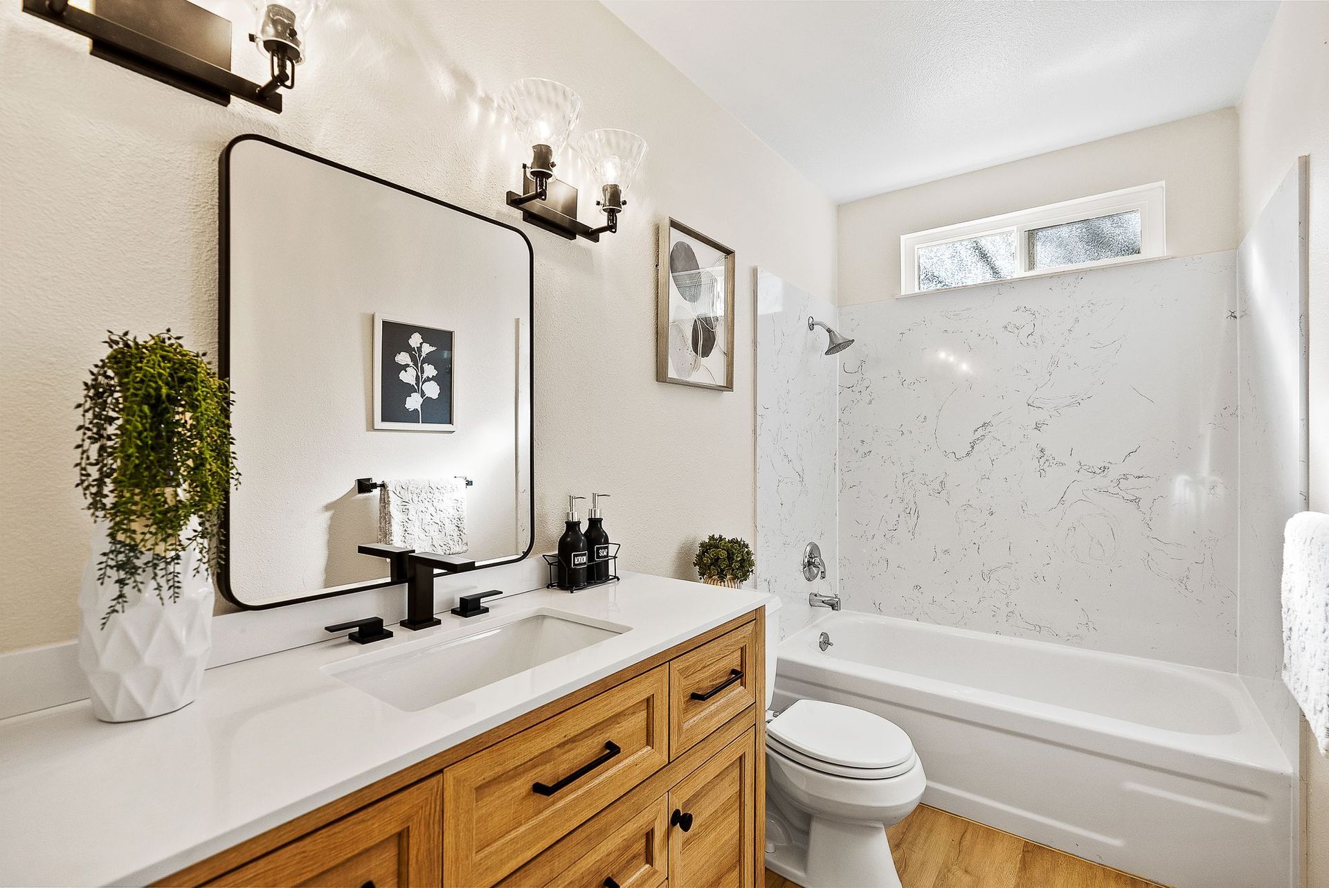 The bedrooms are a great size and have ample closet space. The newly remodeled bathrooms offer style and functionality. Complete with contemporary cabinets fixtures, countertops and a beautiful stone surround.