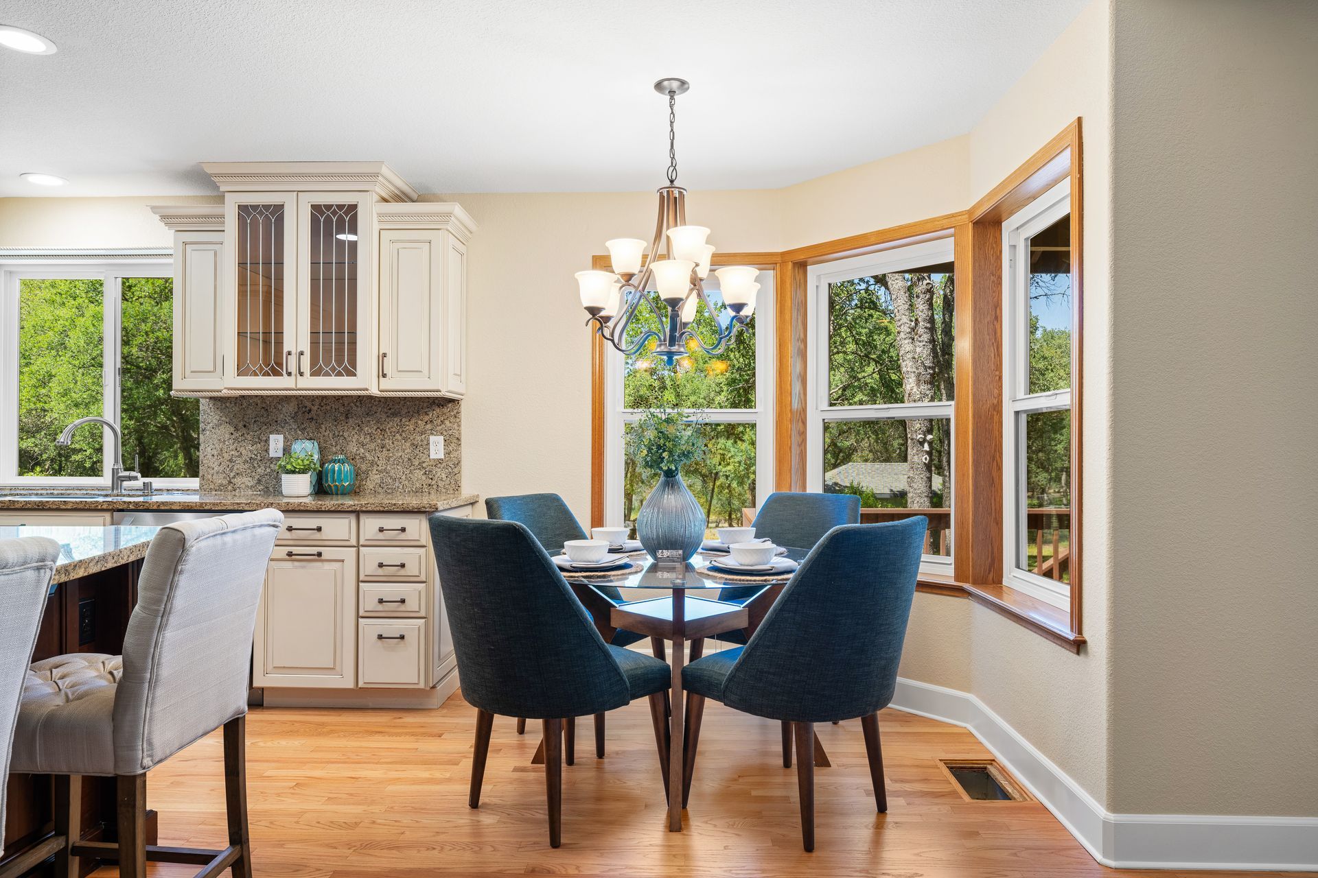 This kitchen is a dream come true! Beautiful granite counters with contemporary white cabinets and picture perfect breakfast nook!