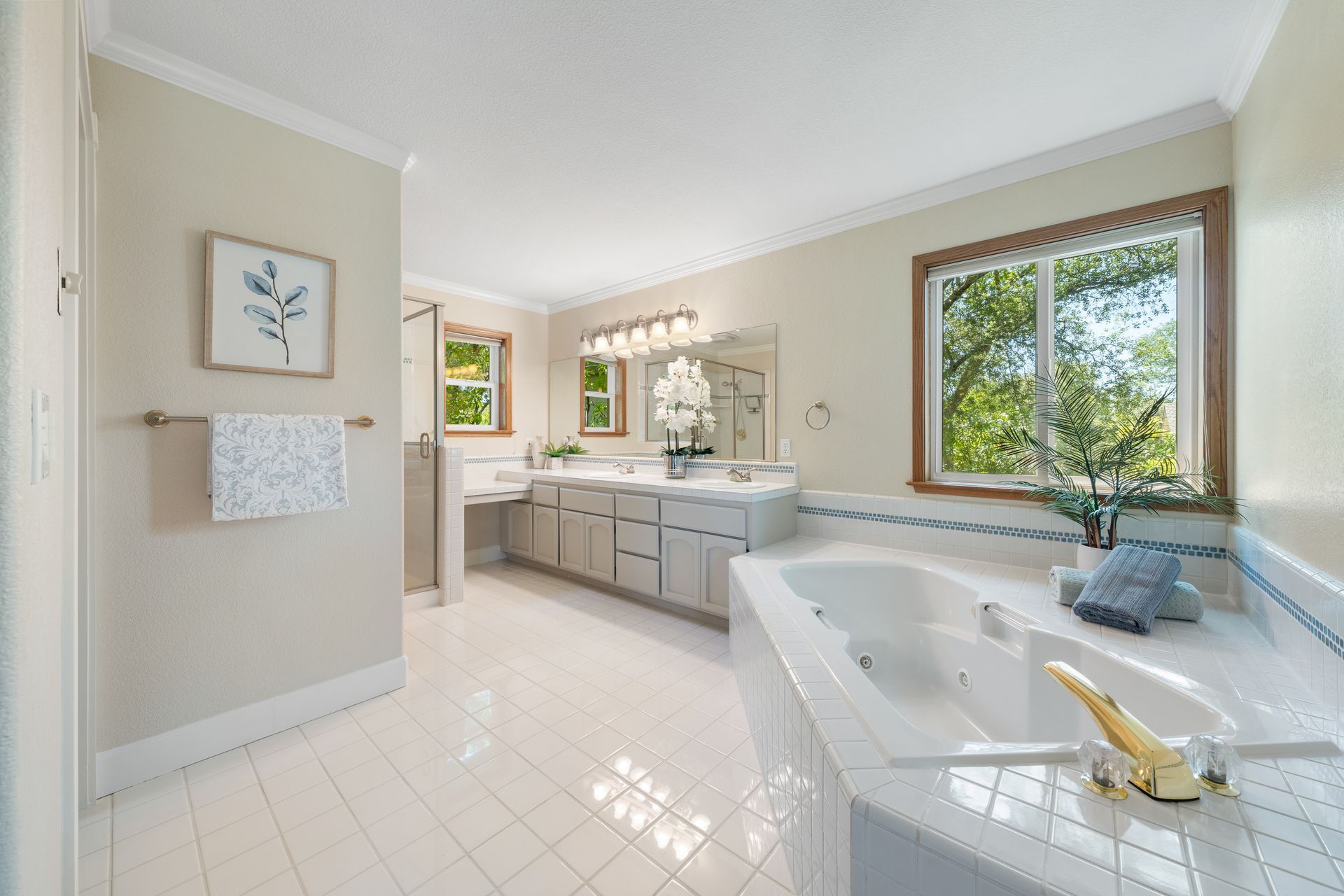 Welcome to this contemporary ranch-style home nestled in one of the most relaxing settings in Shingle Springs! The home is absolutely stunning with views of the natural landscape from every room! The refinished hardwood floors offer a warm glow throughout & there is a fresh coat of interior paint. This home is spacious! With 4 bedrooms, 2 baths, living room, formal dining area, potential office room & kitchen with picture perfect breakfast nook. Tucked away on 2.3 acres, this property has a lot to offer! Step into this gorgeous dramatic living & dining space, perfect for family gatherings or hosting a formal dinner. The gourmet kitchen has contemporary white cabinets, granite countertops, dining bar & comes complete with Thermador appliances. There is a separate family room with a dramatic fireplace & opens to one of the backyard decks. The oversized bedrooms have ample closet space. The primary suite is expansive & has a separate office space. The ensuite bath has a luxurious soaking tub, separate shower & lots of natural light flooding through. Tucked away on 2.3 acres you will not want to leave the tranquility of this private property! Close to shopping, great schools and local eateries.