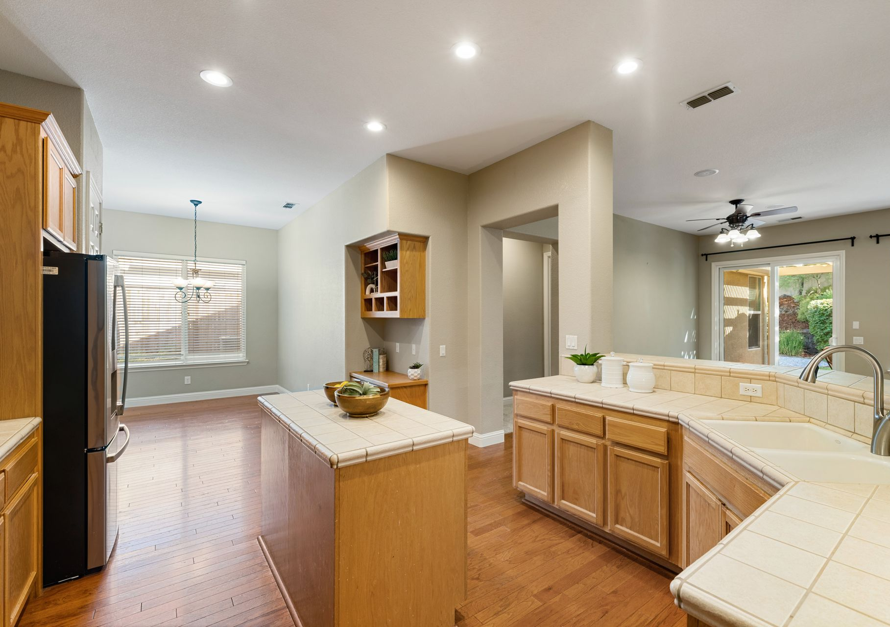This beautiful single-story 4 bedroom, 2 bath home is located in Auburn’s sought-after Grand Oaks neighborhood. The open-concept great room flows into a warm, inviting kitchen with an abundance of countertops, rich cabinetry, center island, dining bar, built-in desk, walk-in pantry and cozy breakfast nook. The living room seamlessly connects to the dining & kitchen areas, making it ideal for daily living & elegant entertaining. Beautiful hardwood floors extend throughout, while expansive windows bathe the home in natural light, creating a bright, welcoming ambiance in every room. The spacious Primary Suite features a spa-like ensuite, complete with soaking tub and shower stall. The additional bedrooms offer ample closet space. There’s an oversized 3 car garage, which could be used as a workshop with plenty of storage. Step into your own private backyard oasis—ideal for relaxing or entertaining. Perfect space for a pool, kids' play area, or BBQ setup, surrounded by lush greenery. Just minutes from top-rated Placer County schools, shopping, dining and historic Old Town Auburn, this move-in ready home blends comfort, charm, and convenience in a family-friendly community.