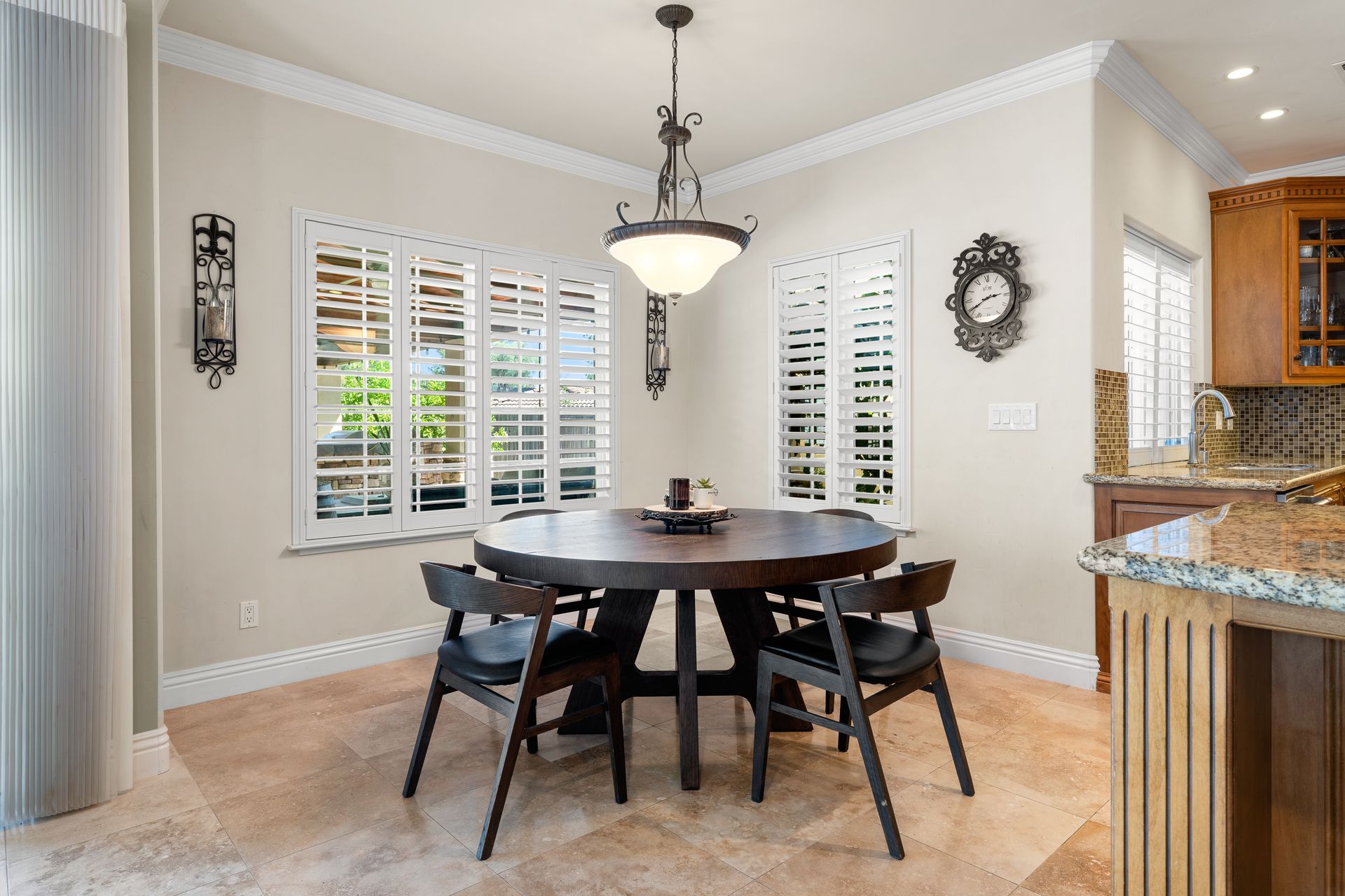 This exquisite gourmet kitchen is a true showstopper, thoughtfully designed to blend luxury and functionality. At the heart of the space is a sleek gas cooktop island, perfect for both cooking and gathering. Elegant granite countertops provide ample workspace, complemented by rich custom cabinetry that offers both beauty and storage. High-end stainless steel appliances cater to every culinary need, while the built-in wine bar, complete with its own refrigerator adds a touch of sophistication for entertaining. Enjoy casual meals in the charming breakfast nook, bathed in natural light and ideal for starting your day in comfort and style.