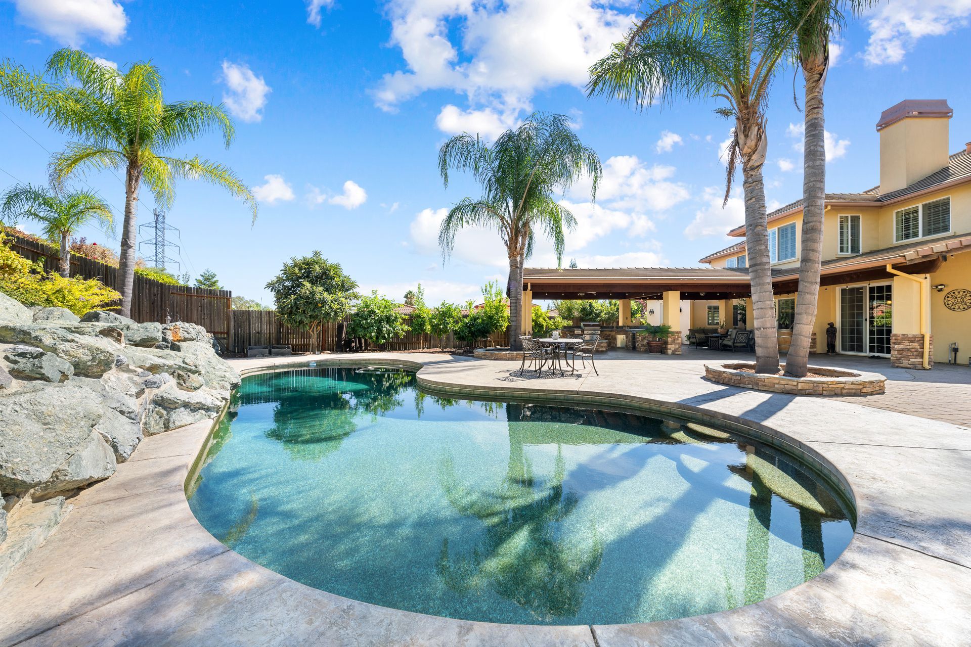 Step into your own private paradise an entertainer’s dream featuring a fully equipped outdoor kitchen, cozy firepit, and a beautifully landscaped backyard oasis. Enjoy the sparkling pool surrounded by mature trees, lush greenery, and even your very own vineyard for a truly unique touch. The spacious, level lot offers exceptional privacy and ample room to host gatherings in style. Additional highlights include an oversized three-car garage and potential RV storage, making this home as functional as it is luxurious.