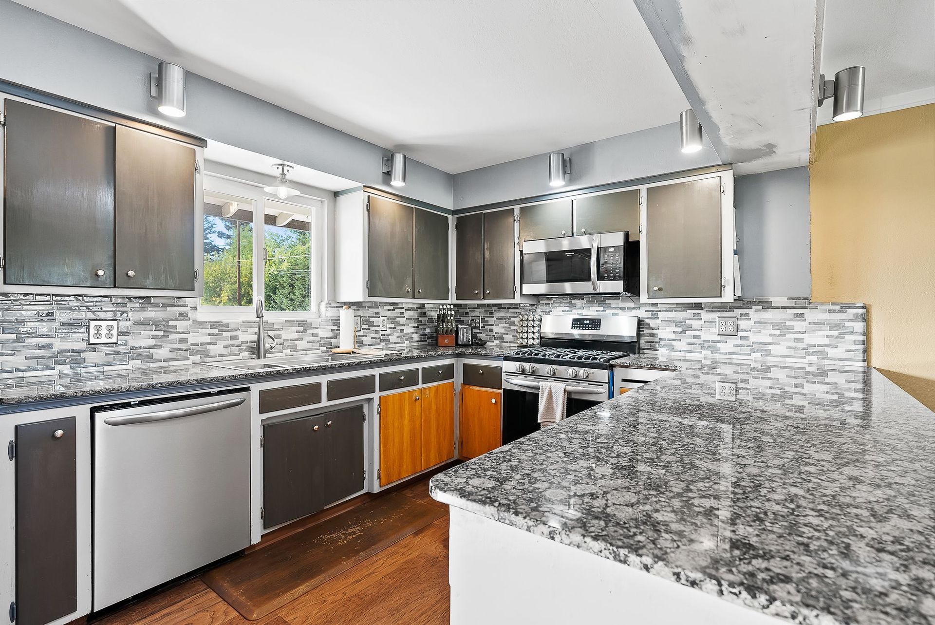 This home has a lot of versatility. The kitchen has been updated with granite counter-tops, features a contemporary backsplash, sleek appliances and dining bar.