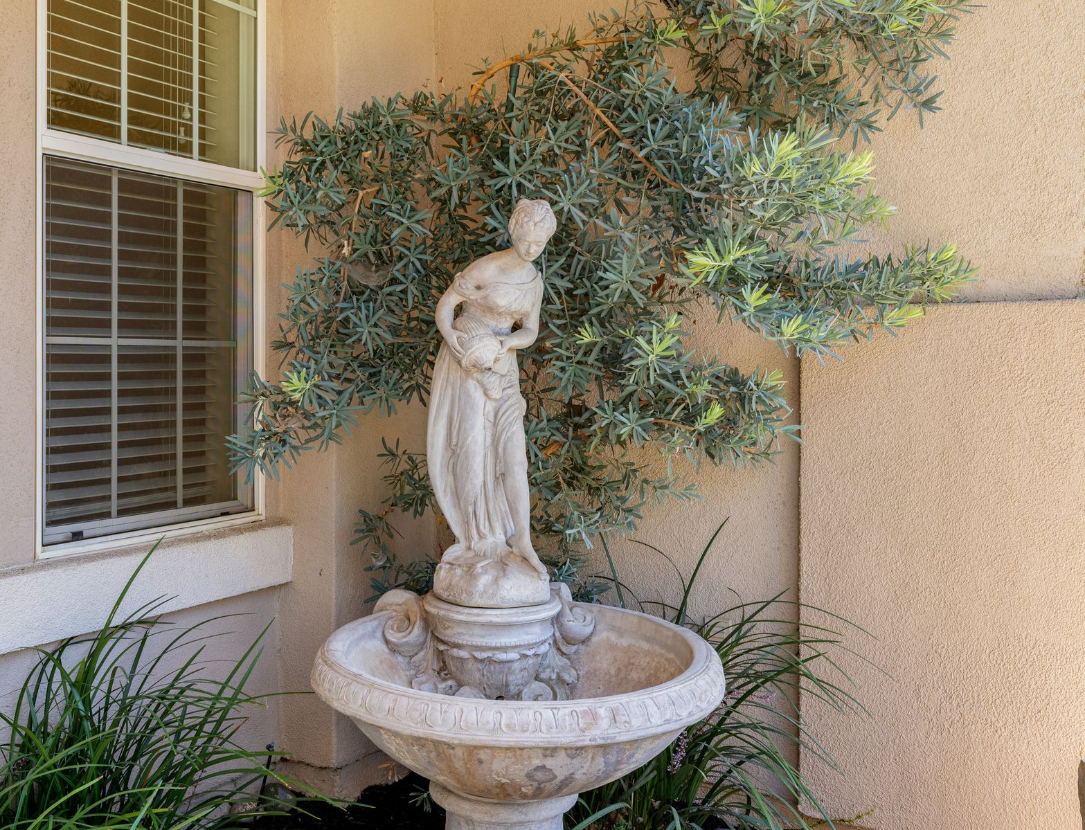 Step into your personal retreat! With shady, mature trees, blooming flowers and a vibrant green lawn, this backyard invites you to unwind and make memories. The gentle sound of the water fountain adds to the peaceful ambiance, an ideal place to spend evenings with loved ones.