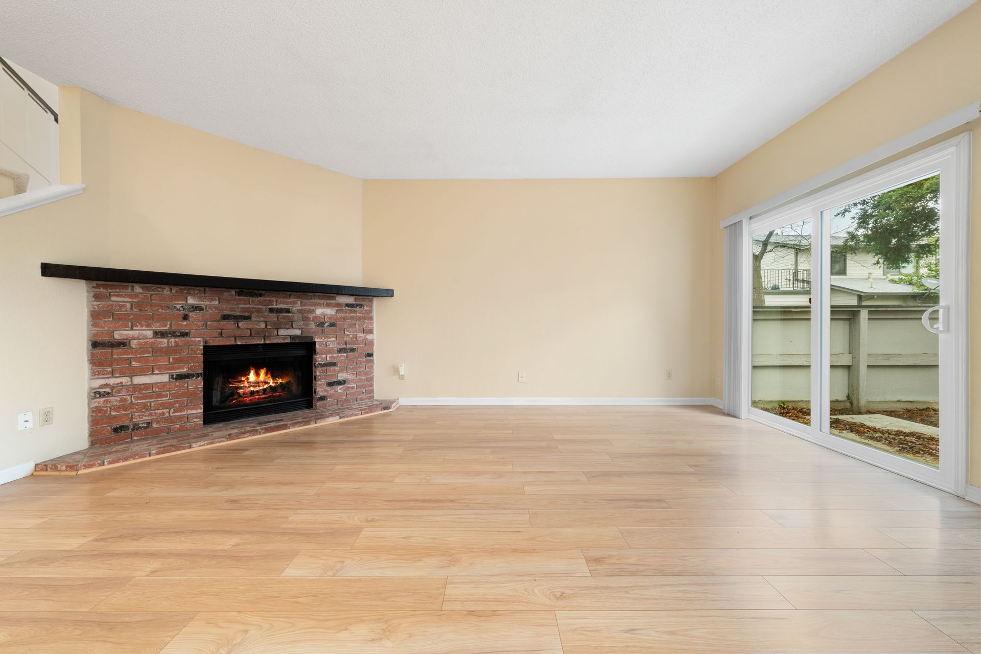 Enter through a gated front patio and into this townhome featuring a brick fireplace and beautiful laminate flooring that flows into the beautiful kitchen!