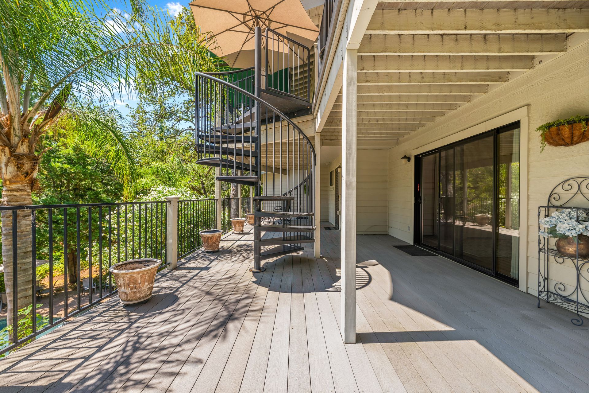 Welcome to this stunning home nestled in Folsom Lake Estate! From the inviting front porch to the dramatic vaulted ceilings, this home is designed to impress.The formal living room features a fireplace & the adjacent dining area offers serene views of the backyard. A spacious family room flows seamlessly into the well-appointed kitchen, complete with abundant cabinetry & generous counter space. There’s stylish bamboo flooring throughout the home, complemented by shutters on every window. The impressive primary suite boasts two walk-in closets, deck & luxurious ensuite bath with a soaking tub, dual sinks & shower. All bedrooms are generously sized, several offer walk-in closets. The laundry room includes cabinetry & the full guest bath features exterior access. A dedicated wine cellar adds a unique touch. Additional upgrades include a Lifetime CertainTeed Presidential composition shingle roof, tankless water heater & multi-zone HVAC system. There’s an oversized two-car garage & the circular driveway provides convenient access. The backyard is a private oasis with a sparkling pool, lush landscaping & expansive composite decks offering breathtaking views. Enjoy access to a private park featuring basketball, pickleball courts & playground. Minutes to Beale’s Point & trails!
