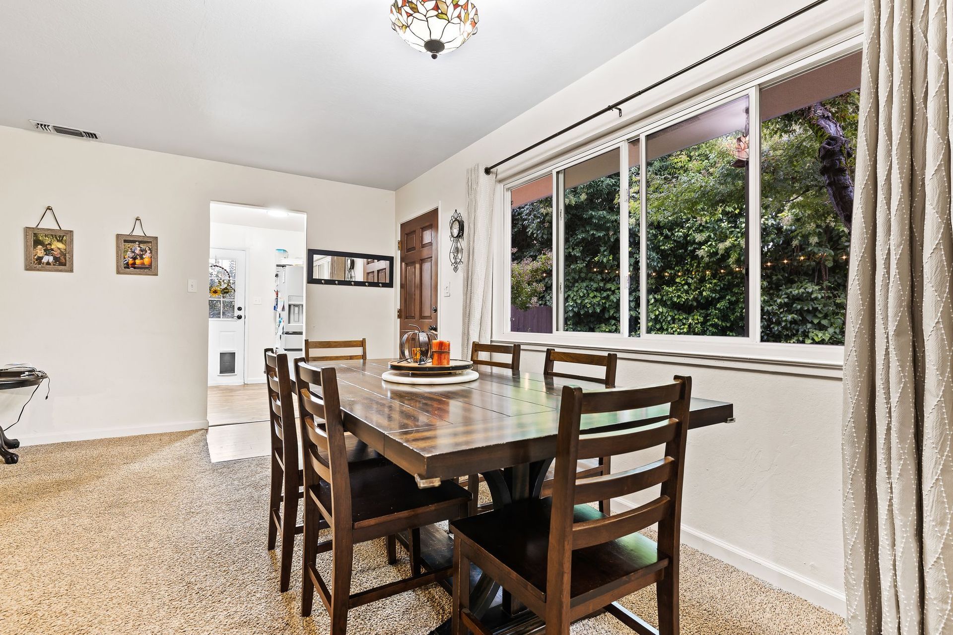 The living room flows effortlessly into the rest of the home, creating a warm and inviting atmosphere that’s perfect for entertaining guests or enjoying quiet moments with loved ones. There's a spacious dining area offers the ideal setting for family meals, gatherings, or special celebrations.
