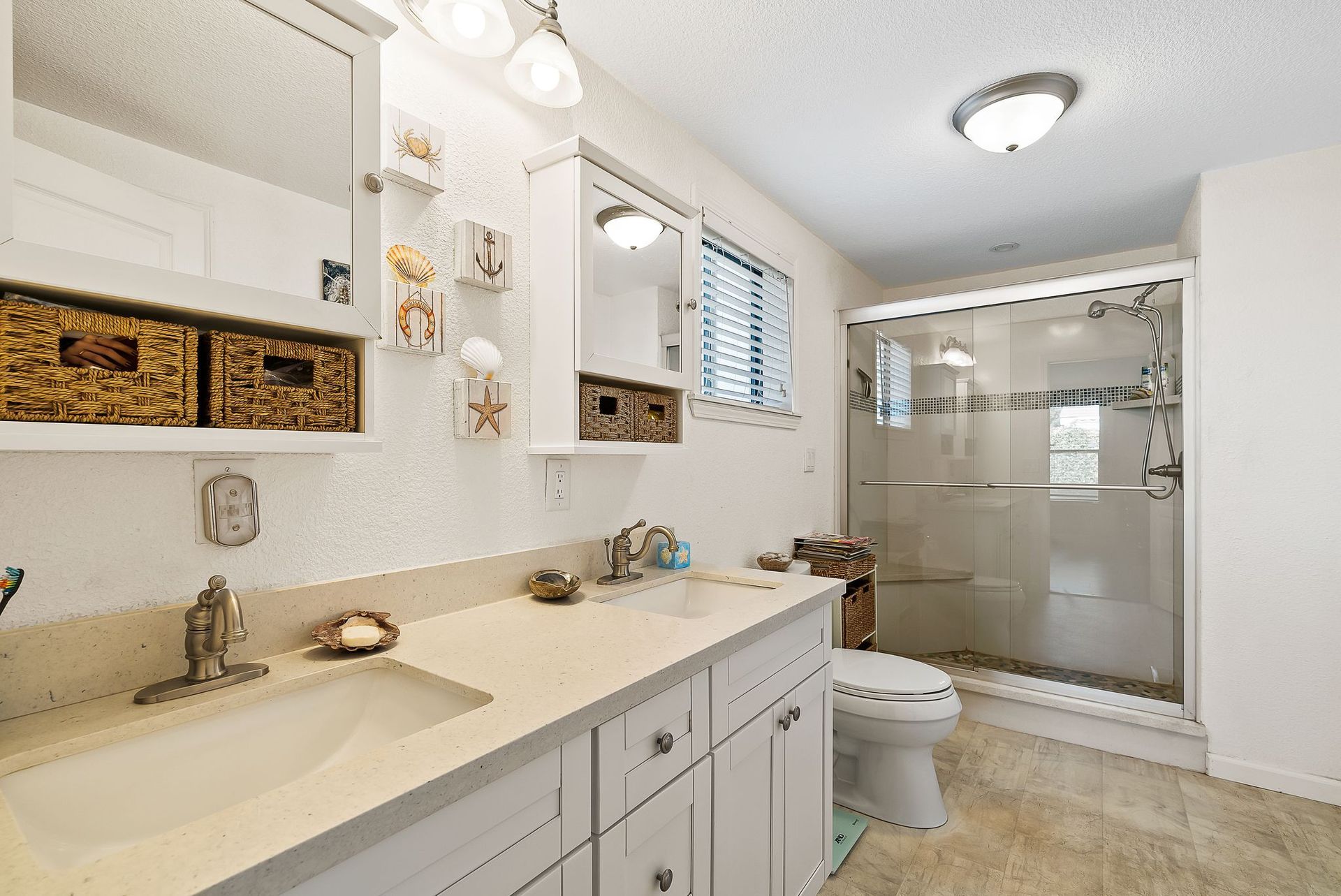 Spacious, contemporary 3 bedroom 2 bath home located in desirable Heritage Senior Mobile Home Park. This functional Bayshore unit offers living space, a bright kitchen and good size bedrooms. The first thing you will notice is the open-concept living space and all the natural lighting. The kitchen has the wow factor! With stainless steel appliances, blue vein quartz countertops and beautiful white cabinetry. There are several dining options, breakfast area and ending bar! The bedrooms are a great size and have ample closet space. The primary suite has a beautifully updated bath with dual sinks, sleek cabinets and decorative tile shower. Located in a 'senior only' community with great amenities. The covered front porch provides a great area to sit and relax, while the backyard is like your very own private oasis. Enjoy the private yard with mature landscape, Meyer Lemon, Orange & Key Lime Fruit Trees! There is an additional storage shed for your convenience and covered parking space. Well-maintained grounds, community pool and clubhouse. Keep in mind the association fee includes park management, water, sewer & trash pick up. Located in friendly town of Galt with an easy commute to Sacramento. This is at a great opportunity for those seeking an affordable living option.