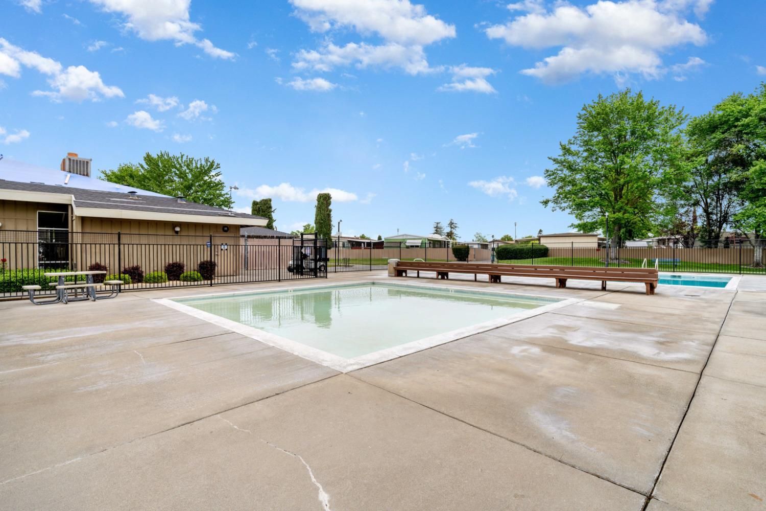 This spacious 3-bedroom, 2-bathroom home is located in Camellia Village Estates This highly desirable, park-like setting is well-maintained and is not age restricted. Enjoy a peaceful, scenic environment while still being just a short commute away from local conveniences. The home features generous living space, open floor plan and ample storage throughout. The living room has large picturesque windows and built-in cabinets. The kitchen offers functionality with plenty of counter space, cabinets and dining bar. The bedrooms are a good size with adequate closet space. There are two full bathrooms, one includes a tub with an integrated shower seat. The laundry room is conveniently located inside. Residents of this friendly community have access to fantastic amenities including a refreshing pool, BBQ area, basketball court and a clubhouse for social gatherings and events. Whether you're relaxing at home or enjoying the community's recreational facilities, this home offers both comfort and convenience in a beautiful setting. Located near shopping, local eateries would be perfect for commuting!