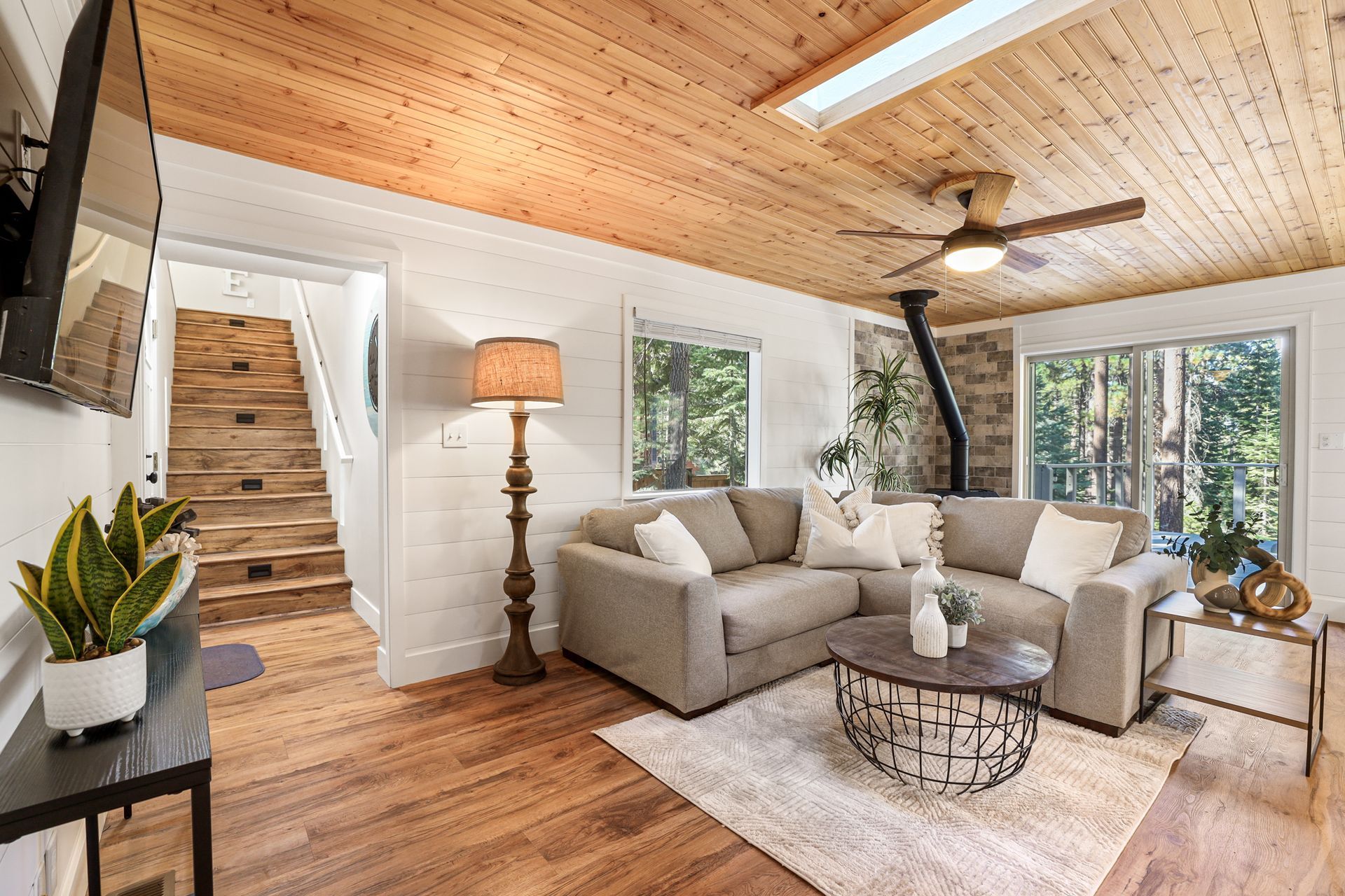 Welcome to this picture perfect home located in South Lake Tahoe! Step into this beautifully updated home! The first thing you'll notice is the natural light beaming through, rustic ceiling, skylights and warm hardwood floors throughout! Complete with 3 bedrooms, 2 baths, cozy living room, functional kitchen and dining space. This living room space would be great for cozy family activities or just taking in the incredible South Lake Tahoe vibe! There is an adjoining deck surrounded by the beauty of soaring pines! The kitchen has beautiful cabinetry, great counter space and stainless steel appliances. There are two spacious bedrooms located on the main floor and a full bathroom. The Primary Suite is located upstairs and offers separate accommodations including an ensuite bath, dual sinks and jacuzzi tub! The lot is completely fenced, has a sprinkler system and is low maintenance. The exterior is ready for the weather! With new composition roof & Hardie cement siding. Nestled in the Gardner Mountain neighborhood and is conveniently located near some of the best beaches, trails, local eateries and shops at the Y! Great investment opportunity, vacation rental or the chance to make South Lake Tahoe your home!